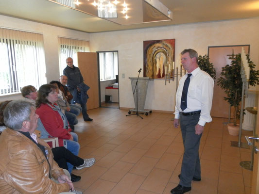 Am 22. April 2015 luden wir alle Interessierten zu einer exklusiven Besichtigung des Krematoriums Völklingen ein. Die Resonanz war groß und die Teilnehmerzahl wurde daher auf 25 Personen beschränkt. Mit einem Bus und 2 Autos machte man sich auf den Weg nach Völklingen. Am Haupteingang des Krematoriums wartete bereits der Betriebsleiter, Herr Hajo, auf die Gruppe und begrüßte alle Anwesenden.