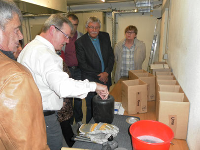 Auch hier konnten wir uns vom Prozedere der Aschentrennung und –abfüllung ein Bild machen. Mancher staunte doch, wie viel Technik hinter einer Kremierung steht.